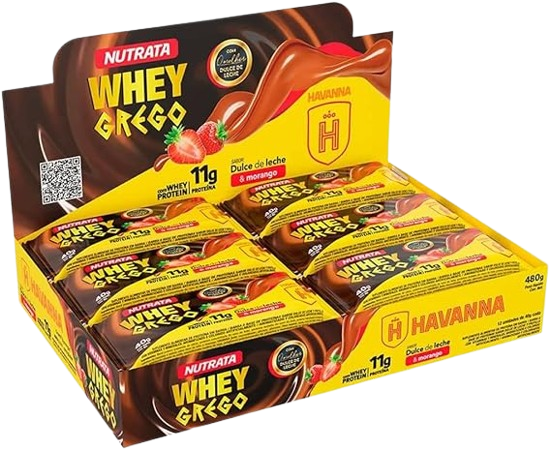 Essa é para quem ama sobremesas! A Nutrata, em parceria com a Havanna, criou uma barra única que une iogurte grego, doce de leite e cobertura de chocolate meio amargo. São 11g de proteína, fibras, vitaminas e minerais.